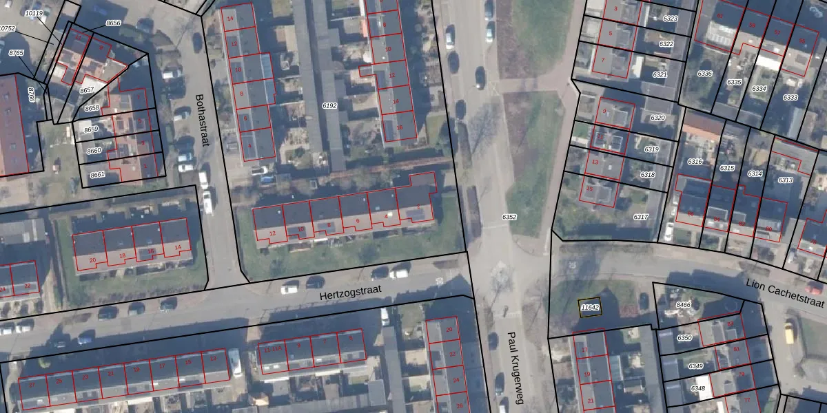 Het perceel waarop Hertzogstraat 2 staat heeft een oppervlakte van 3963 m². Dit is een zeer groot perceel. De perceeloppervlakte wordt geregistreerd door het Kadaster. Gedetailleerde informatie over de maten van dit perceel kunt u vinden in het rapport Kadastrale kaart met maatvoering van Hertzogstraat 2.
