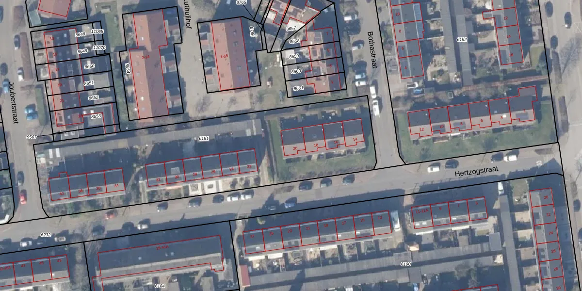 Het perceel waarop Hertzogstraat 20 staat heeft een oppervlakte van 2913 m². Dit is een zeer groot perceel. De perceeloppervlakte wordt geregistreerd door het Kadaster. Gedetailleerde informatie over de maten van dit perceel kunt u vinden in het rapport Kadastrale kaart met maatvoering van Hertzogstraat 20.