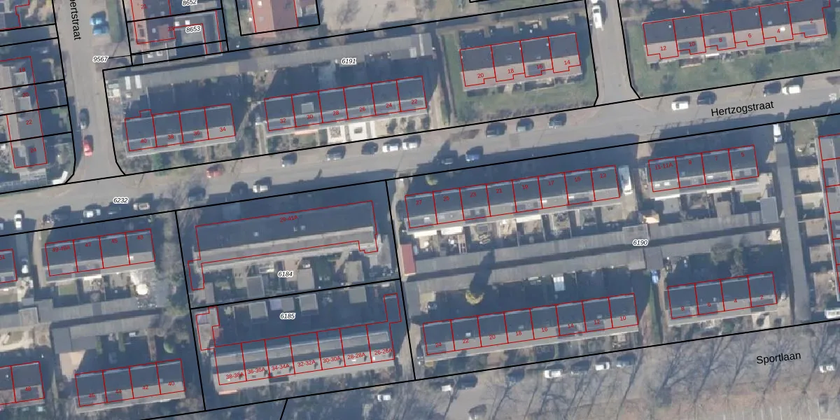 Het perceel waarop Hertzogstraat 27 staat heeft een oppervlakte van 5602 m². Dit is een zeer groot perceel. De perceeloppervlakte wordt geregistreerd door het Kadaster. Gedetailleerde informatie over de maten van dit perceel kunt u vinden in het rapport Kadastrale kaart met maatvoering van Hertzogstraat 27.