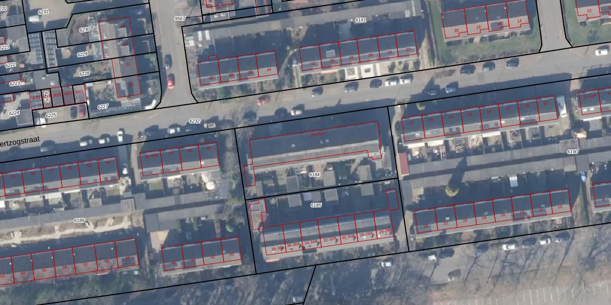 Het perceel waarop Hertzogstraat 39-A staat heeft een oppervlakte van 1202 m². Dit is een zeer groot perceel. De perceeloppervlakte wordt geregistreerd door het Kadaster. Gedetailleerde informatie over de maten van dit perceel kunt u vinden in het rapport Kadastrale kaart met maatvoering van Hertzogstraat 39-A.