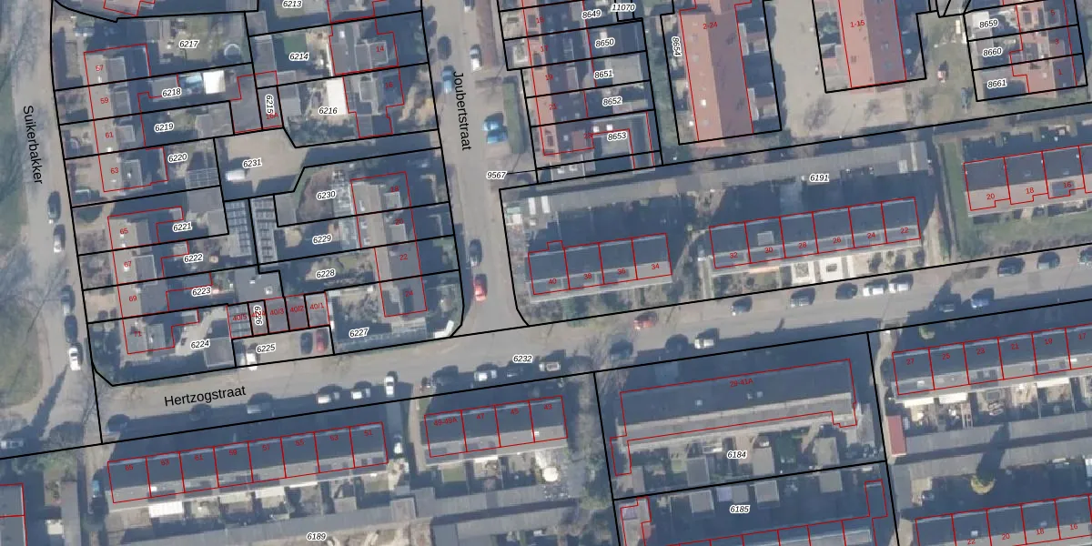 Het perceel waarop Hertzogstraat 40 staat heeft een oppervlakte van 2913 m². Dit is een zeer groot perceel. De perceeloppervlakte wordt geregistreerd door het Kadaster. Gedetailleerde informatie over de maten van dit perceel kunt u vinden in het rapport Kadastrale kaart met maatvoering van Hertzogstraat 40.