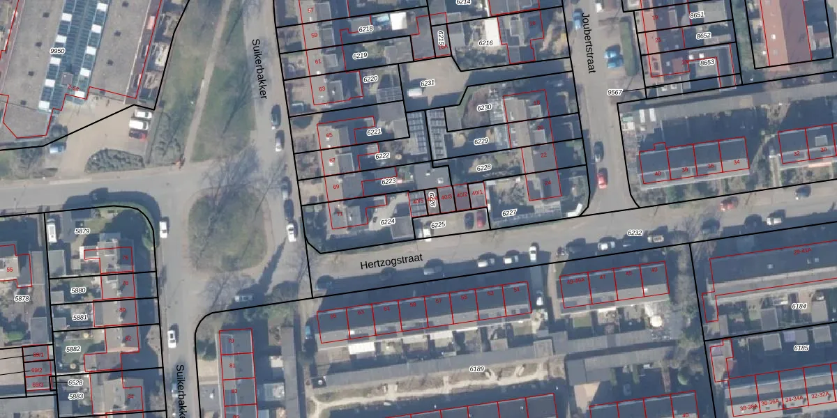 Het perceel waarop Hertzogstraat 40-5 staat heeft een oppervlakte van 322 m². Dit is een groot perceel. De perceeloppervlakte wordt geregistreerd door het Kadaster. Gedetailleerde informatie over de maten van dit perceel kunt u vinden in het rapport Kadastrale kaart met maatvoering van Hertzogstraat 40-5.