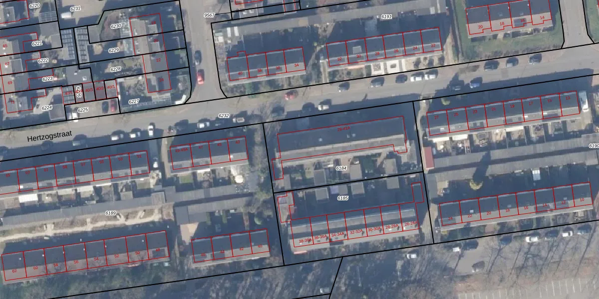 Het perceel waarop Hertzogstraat 41-A staat heeft een oppervlakte van 1202 m². Dit is een zeer groot perceel. De perceeloppervlakte wordt geregistreerd door het Kadaster. Gedetailleerde informatie over de maten van dit perceel kunt u vinden in het rapport Kadastrale kaart met maatvoering van Hertzogstraat 41-A.
