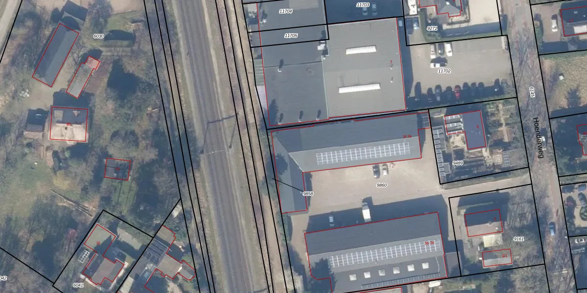 Het perceel waarop Hoenderweg 3-g staat heeft een oppervlakte van 3485 m². Dit is een zeer groot perceel. De perceeloppervlakte wordt geregistreerd door het Kadaster. Gedetailleerde informatie over de maten van dit perceel kunt u vinden in het rapport Kadastrale kaart met maatvoering van Hoenderweg 3-g.