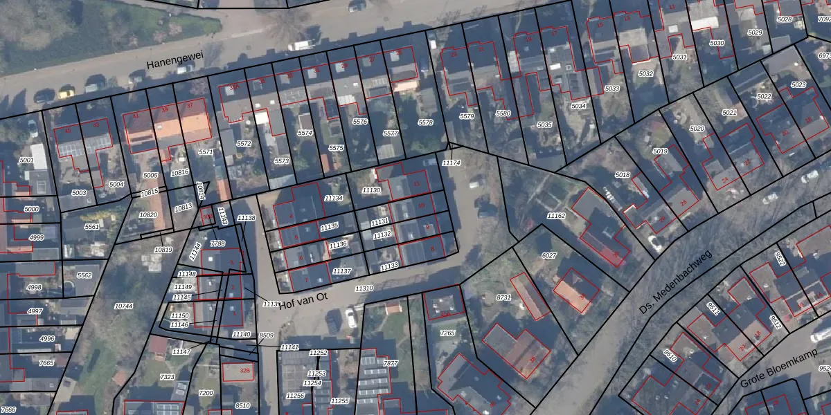Het perceel waarop Hof van Ot 10 staat heeft een oppervlakte van 113 m². Dit is een middelgroot perceel. De perceeloppervlakte wordt geregistreerd door het Kadaster. Gedetailleerde informatie over de maten van dit perceel kunt u vinden in het rapport Kadastrale kaart met maatvoering van Hof van Ot 10.
