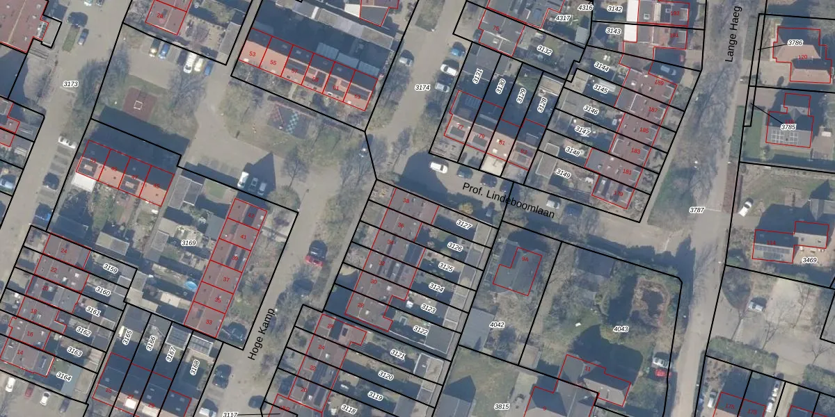 Het perceel waarop Hoge Kamp 38 staat heeft een oppervlakte van 174 m². Dit is een middelgroot perceel. De perceeloppervlakte wordt geregistreerd door het Kadaster. Gedetailleerde informatie over de maten van dit perceel kunt u vinden in het rapport Kadastrale kaart met maatvoering van Hoge Kamp 38.