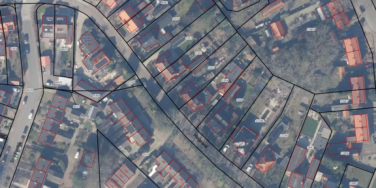Het perceel waarop Hogewal 47 staat heeft een oppervlakte van 510 m². Dit is een groot perceel. De perceeloppervlakte wordt geregistreerd door het Kadaster. Gedetailleerde informatie over de maten van dit perceel kunt u vinden in het rapport Kadastrale kaart met maatvoering van Hogewal 47.