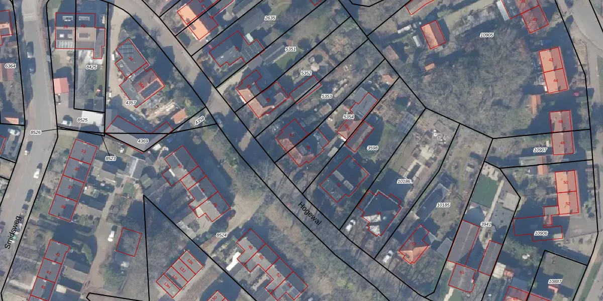 Het perceel waarop Hogewal 49 staat heeft een oppervlakte van 505 m². Dit is een groot perceel. De perceeloppervlakte wordt geregistreerd door het Kadaster. Gedetailleerde informatie over de maten van dit perceel kunt u vinden in het rapport Kadastrale kaart met maatvoering van Hogewal 49.