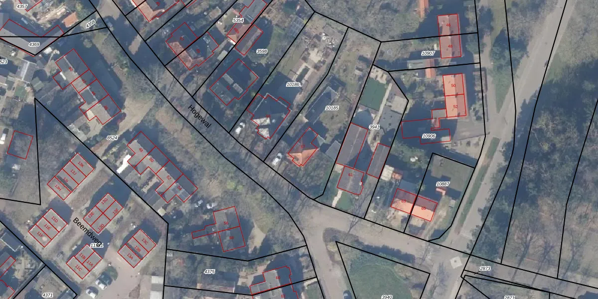 Het perceel waarop Hogewal 57 staat heeft een oppervlakte van 906 m². Dit is een groot perceel. De perceeloppervlakte wordt geregistreerd door het Kadaster. Gedetailleerde informatie over de maten van dit perceel kunt u vinden in het rapport Kadastrale kaart met maatvoering van Hogewal 57.