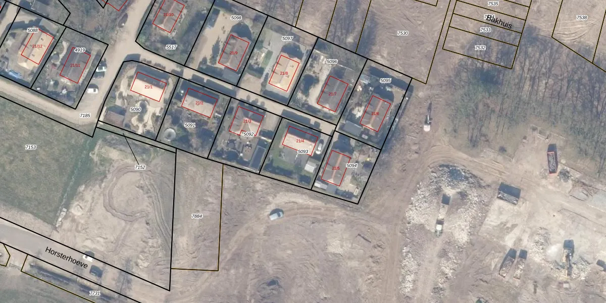 Het perceel waarop Horster-Engweg 21-4 staat heeft een oppervlakte van 340 m². Dit is een groot perceel. De perceeloppervlakte wordt geregistreerd door het Kadaster. Gedetailleerde informatie over de maten van dit perceel kunt u vinden in het rapport Kadastrale kaart met maatvoering van Horster-Engweg 21-4.