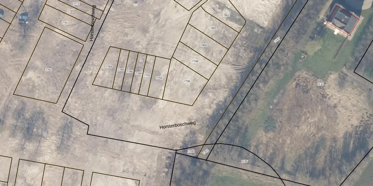 Het perceel waarop Horsterboschweg 65 staat heeft een oppervlakte van 385 m². Dit is een groot perceel. De perceeloppervlakte wordt geregistreerd door het Kadaster. Gedetailleerde informatie over de maten van dit perceel kunt u vinden in het rapport Kadastrale kaart met maatvoering van Horsterboschweg 65.