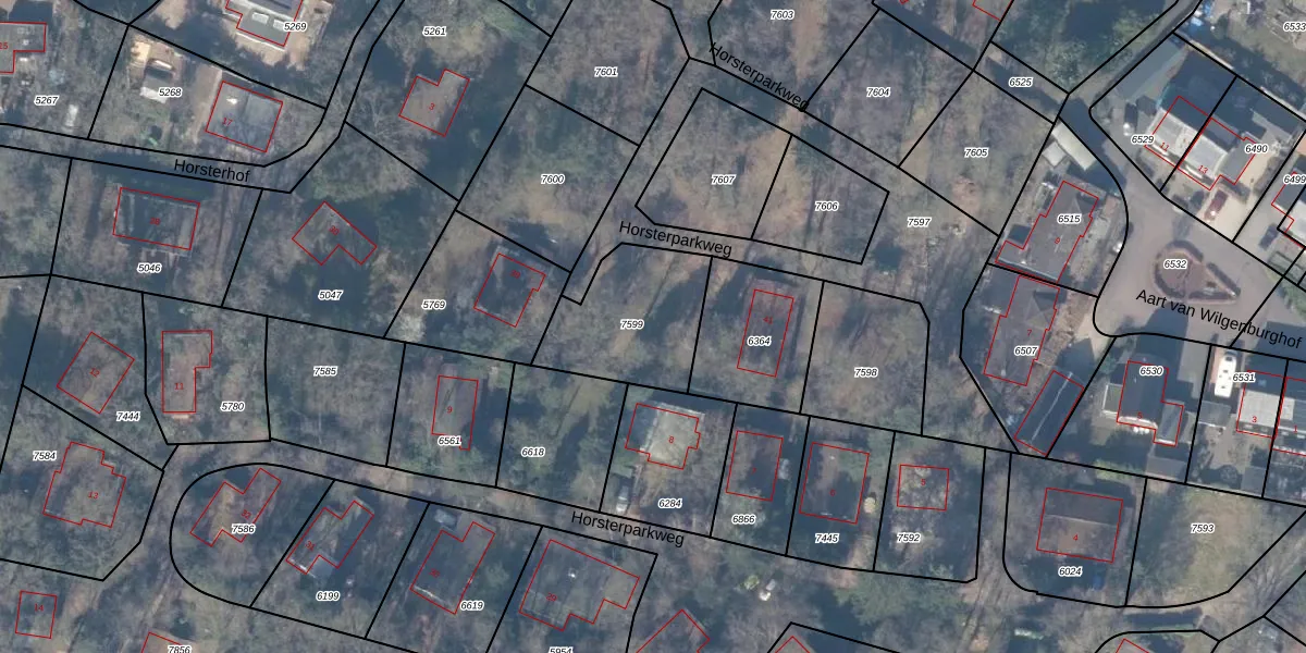 Het perceel waarop Horsterparkweg 40 staat heeft een oppervlakte van 425 m². Dit is een groot perceel. De perceeloppervlakte wordt geregistreerd door het Kadaster. Gedetailleerde informatie over de maten van dit perceel kunt u vinden in het rapport Kadastrale kaart met maatvoering van Horsterparkweg 40.