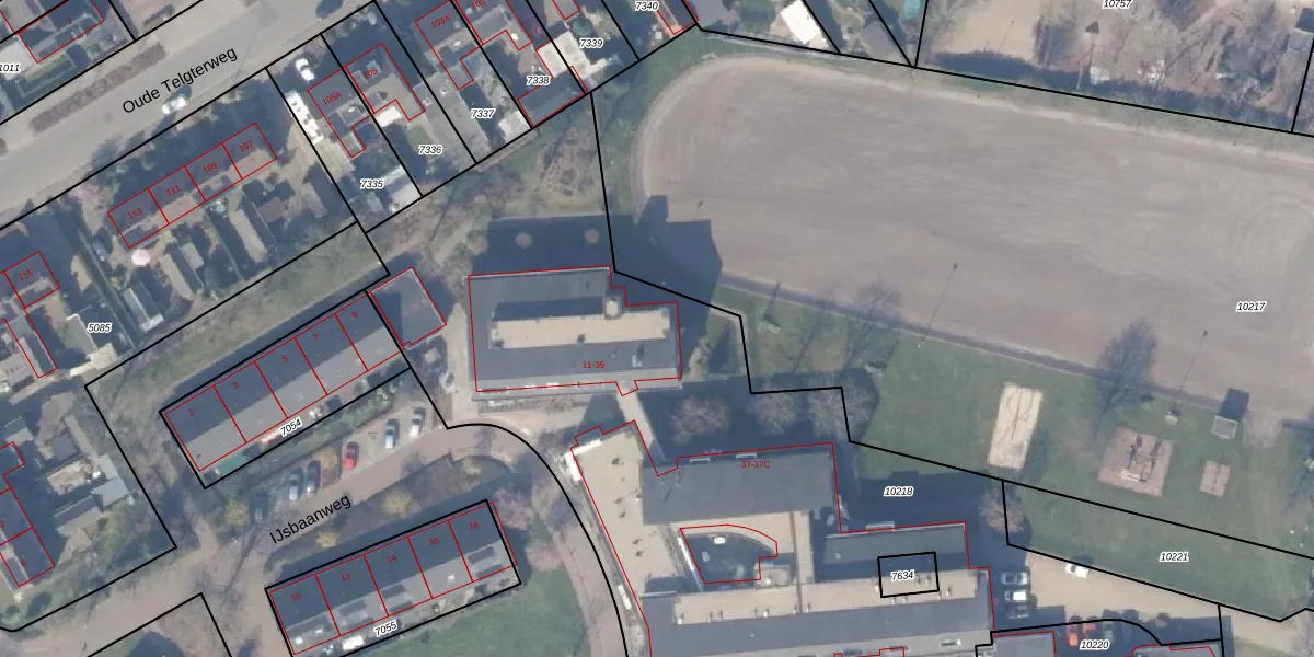 Het perceel waarop IJsbaanweg 33 staat heeft een oppervlakte van 4305 m². Dit is een zeer groot perceel. De perceeloppervlakte wordt geregistreerd door het Kadaster. Gedetailleerde informatie over de maten van dit perceel kunt u vinden in het rapport Kadastrale kaart met maatvoering van IJsbaanweg 33.