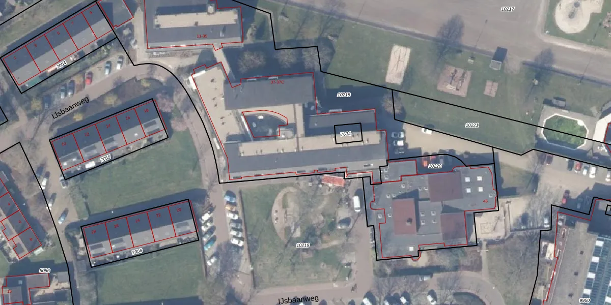 Het perceel waarop IJsbaanweg 37 staat heeft een oppervlakte van 4305 m². Dit is een zeer groot perceel. De perceeloppervlakte wordt geregistreerd door het Kadaster. Gedetailleerde informatie over de maten van dit perceel kunt u vinden in het rapport Kadastrale kaart met maatvoering van IJsbaanweg 37.