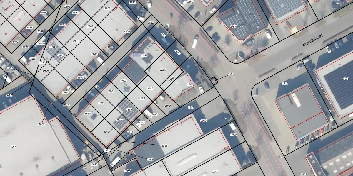 Gebruik de zoekbalk of klik op een perceel voor informatie over de adressen binnen dit perceel.