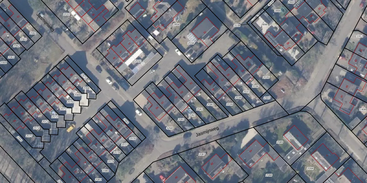 Jasmijnweg 63 is gelegen op kadastraal perceel EML00E2041. Deze kadastrale aanduiding is uniek en wordt gebruikt door het Kadaster om eigendomsrechten en andere zakelijke rechten vast te leggen. Het perceel maakt onderdeel uit van de kadastrale gemeente Ermelo.