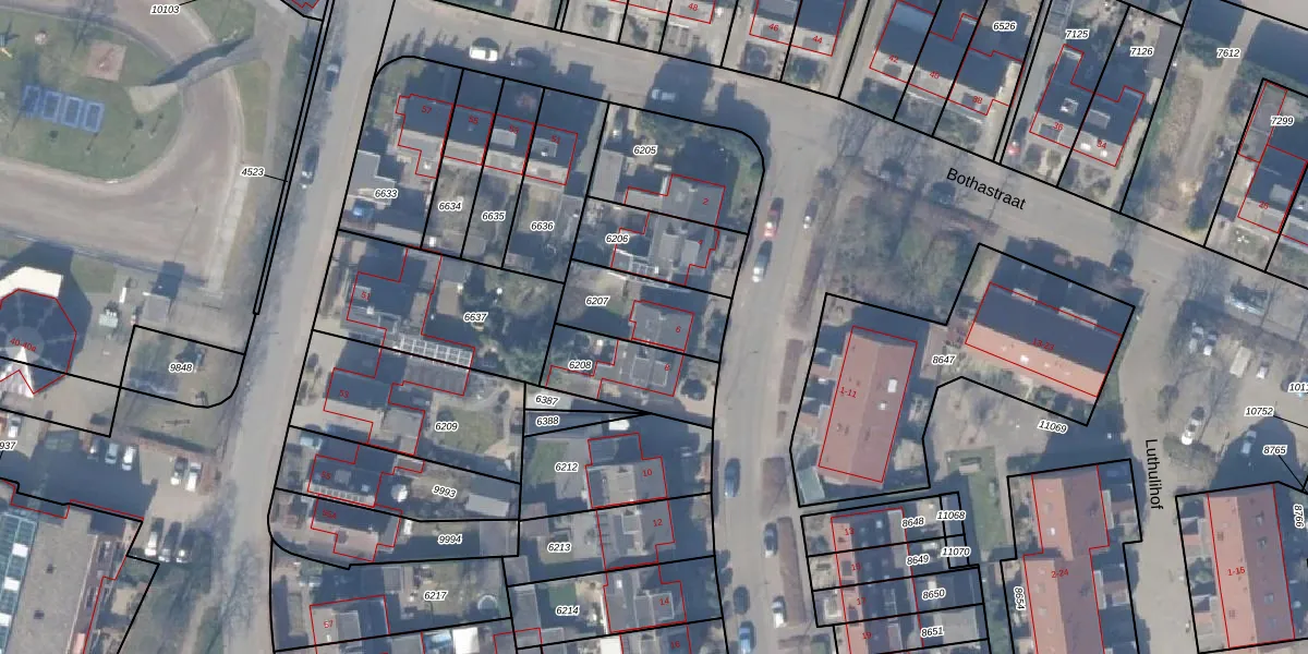 Gebruik de zoekbalk of klik op een perceel voor informatie over de adressen binnen dit perceel.