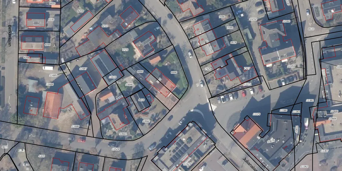 Het perceel waarop Julianalaan 13 staat heeft een oppervlakte van 430 m². Dit is een groot perceel. De perceeloppervlakte wordt geregistreerd door het Kadaster. Gedetailleerde informatie over de maten van dit perceel kunt u vinden in het rapport Kadastrale kaart met maatvoering van Julianalaan 13.