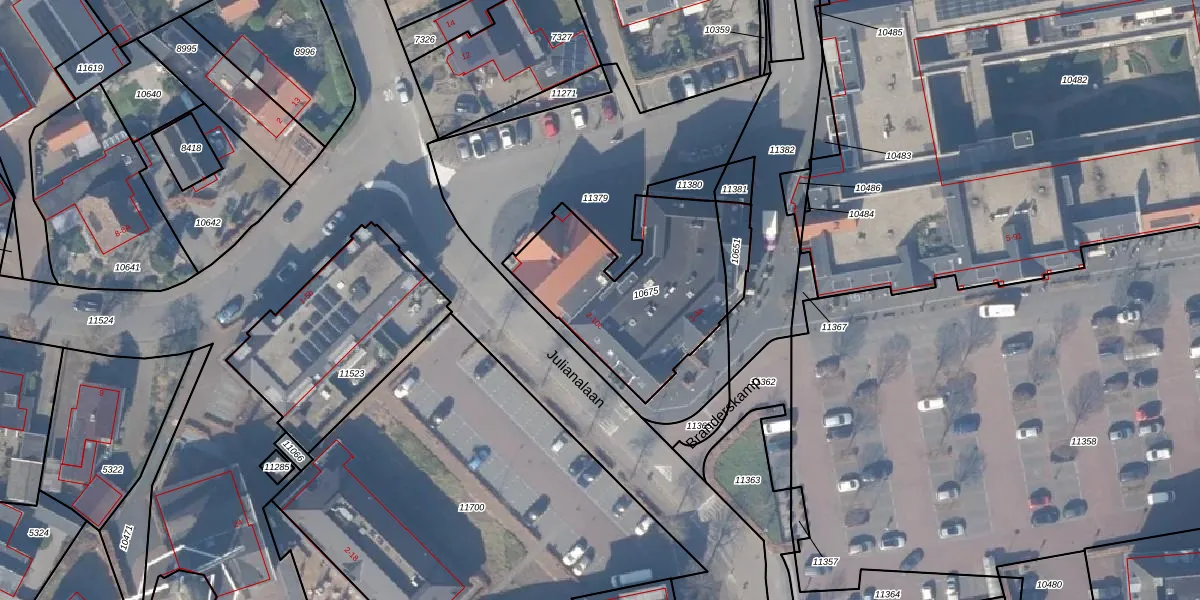 Het perceel waarop Julianalaan 6-f staat heeft een oppervlakte van 735 m². Dit is een groot perceel. De perceeloppervlakte wordt geregistreerd door het Kadaster. Gedetailleerde informatie over de maten van dit perceel kunt u vinden in het rapport Kadastrale kaart met maatvoering van Julianalaan 6-f.