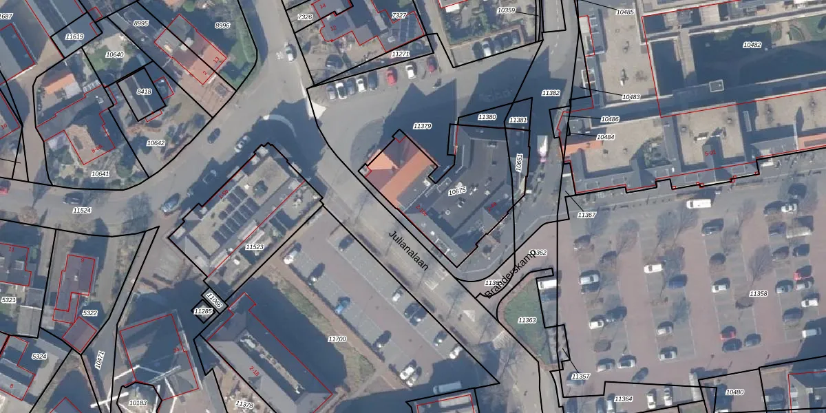 Het perceel waarop Julianalaan 8-d staat heeft een oppervlakte van 735 m². Dit is een groot perceel. De perceeloppervlakte wordt geregistreerd door het Kadaster. Gedetailleerde informatie over de maten van dit perceel kunt u vinden in het rapport Kadastrale kaart met maatvoering van Julianalaan 8-d.