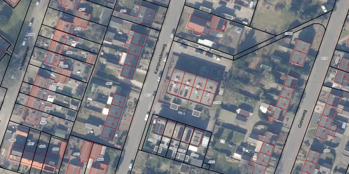 Het perceel waarop Kampvelderweg 23-d staat heeft een oppervlakte van 5213 m². Dit is een zeer groot perceel. De perceeloppervlakte wordt geregistreerd door het Kadaster. Gedetailleerde informatie over de maten van dit perceel kunt u vinden in het rapport Kadastrale kaart met maatvoering van Kampvelderweg 23-d.