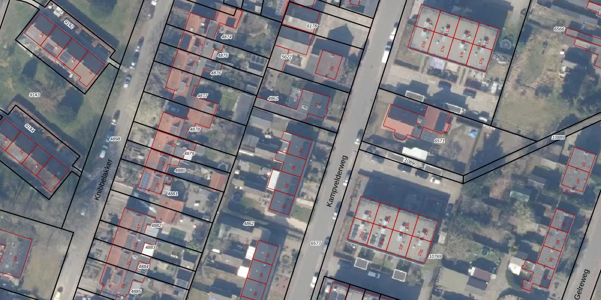 Het perceel waarop Kampvelderweg 24 staat heeft een oppervlakte van 2198 m². Dit is een zeer groot perceel. De perceeloppervlakte wordt geregistreerd door het Kadaster. Gedetailleerde informatie over de maten van dit perceel kunt u vinden in het rapport Kadastrale kaart met maatvoering van Kampvelderweg 24.
