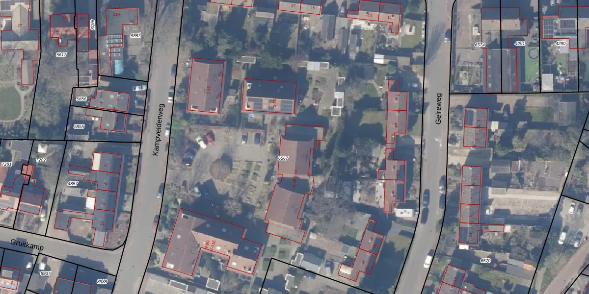 Kampvelderweg 5-A is gelegen op kadastraal perceel EML00F6567. Deze kadastrale aanduiding is uniek en wordt gebruikt door het Kadaster om eigendomsrechten en andere zakelijke rechten vast te leggen. Het perceel maakt onderdeel uit van de kadastrale gemeente Ermelo.