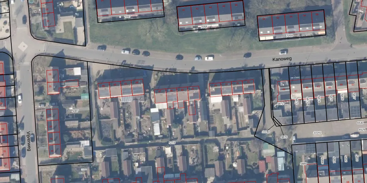Het perceel waarop Kanoweg 83 staat heeft een oppervlakte van 8585 m². Dit is een zeer groot perceel. De perceeloppervlakte wordt geregistreerd door het Kadaster. Gedetailleerde informatie over de maten van dit perceel kunt u vinden in het rapport Kadastrale kaart met maatvoering van Kanoweg 83.
