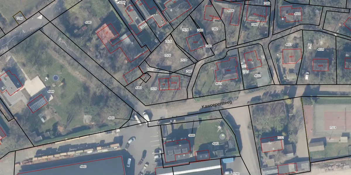 Het perceel waarop Kawoepersteeg 40-55 staat heeft een oppervlakte van 492 m². Dit is een groot perceel. De perceeloppervlakte wordt geregistreerd door het Kadaster. Gedetailleerde informatie over de maten van dit perceel kunt u vinden in het rapport Kadastrale kaart met maatvoering van Kawoepersteeg 40-55.