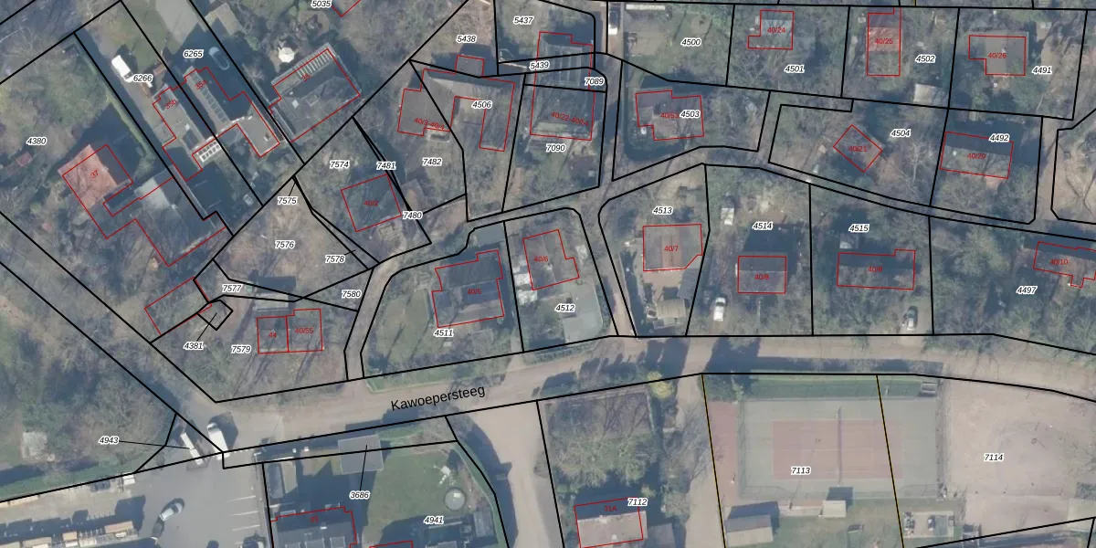 Kawoepersteeg 40-6 is gelegen op kadastraal perceel EML00I4512. Deze kadastrale aanduiding is uniek en wordt gebruikt door het Kadaster om eigendomsrechten en andere zakelijke rechten vast te leggen. Het perceel maakt onderdeel uit van de kadastrale gemeente Ermelo.