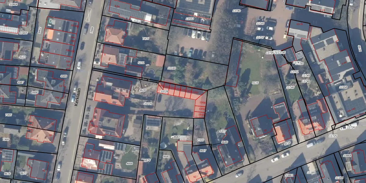 Het perceel waarop Kerklaan 13-05 staat heeft een oppervlakte van 1734 m². Dit is een zeer groot perceel. De perceeloppervlakte wordt geregistreerd door het Kadaster. Gedetailleerde informatie over de maten van dit perceel kunt u vinden in het rapport Kadastrale kaart met maatvoering van Kerklaan 13-05.