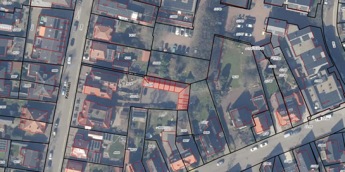 Het perceel waarop Kerklaan 13-06 staat heeft een oppervlakte van 1734 m². Dit is een zeer groot perceel. De perceeloppervlakte wordt geregistreerd door het Kadaster. Gedetailleerde informatie over de maten van dit perceel kunt u vinden in het rapport Kadastrale kaart met maatvoering van Kerklaan 13-06.