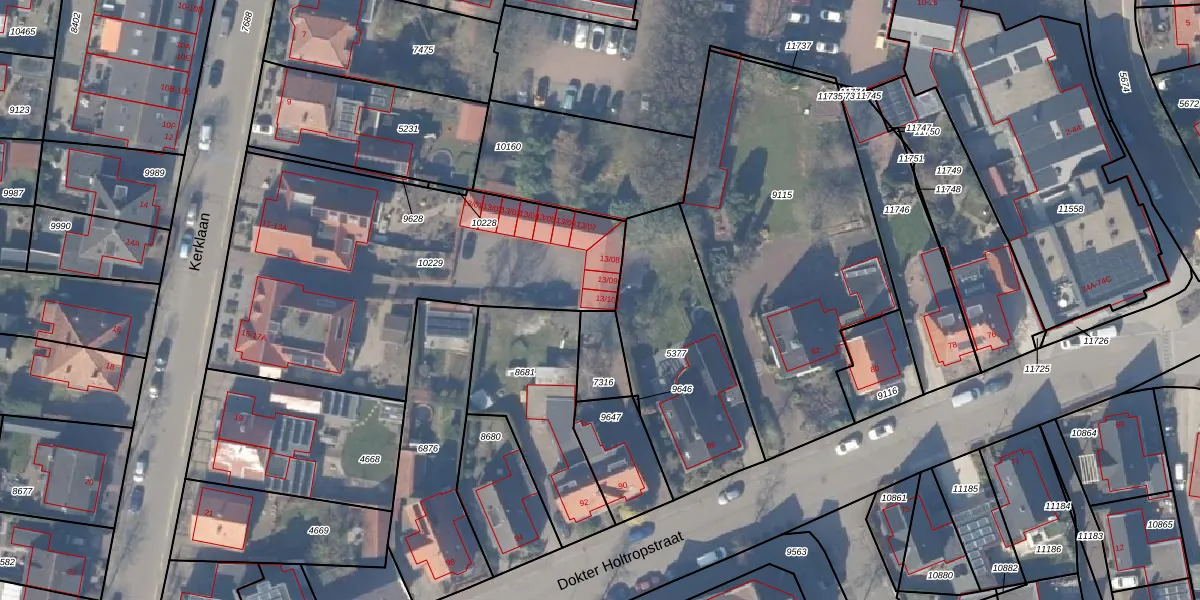 Het perceel waarop Kerklaan 13-10 staat heeft een oppervlakte van 1734 m². Dit is een zeer groot perceel. De perceeloppervlakte wordt geregistreerd door het Kadaster. Gedetailleerde informatie over de maten van dit perceel kunt u vinden in het rapport Kadastrale kaart met maatvoering van Kerklaan 13-10.