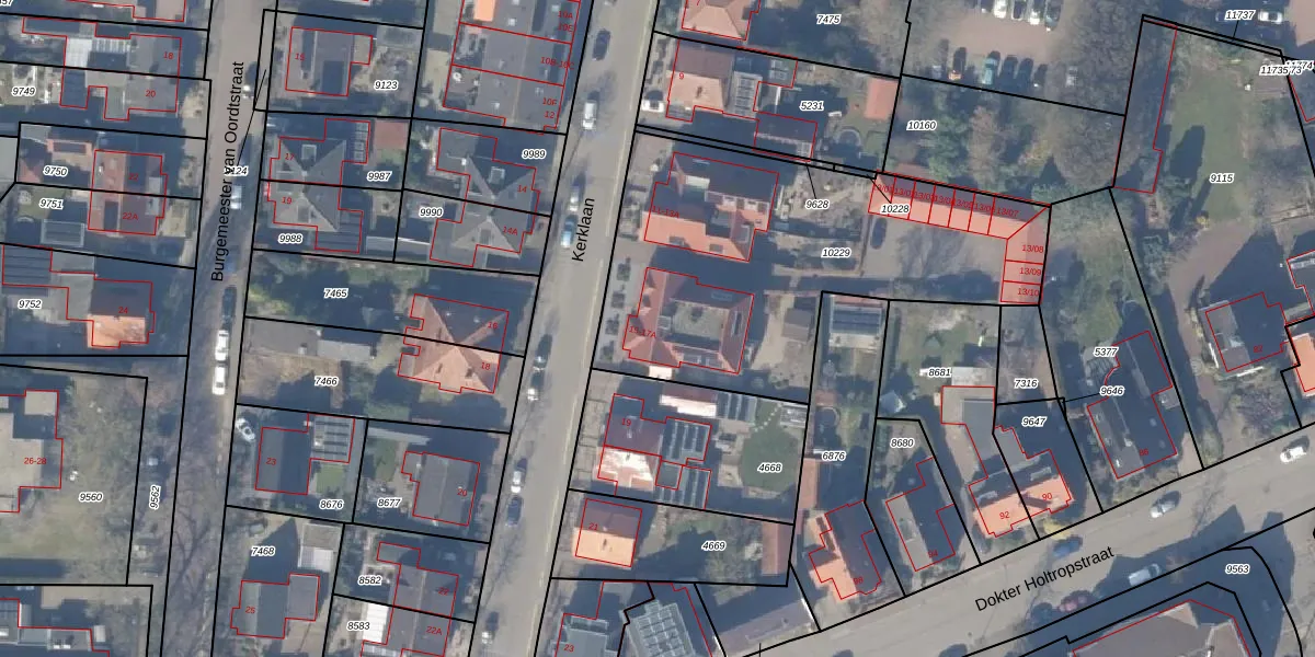 Het perceel waarop Kerklaan 17 staat heeft een oppervlakte van 1734 m². Dit is een zeer groot perceel. De perceeloppervlakte wordt geregistreerd door het Kadaster. Gedetailleerde informatie over de maten van dit perceel kunt u vinden in het rapport Kadastrale kaart met maatvoering van Kerklaan 17.