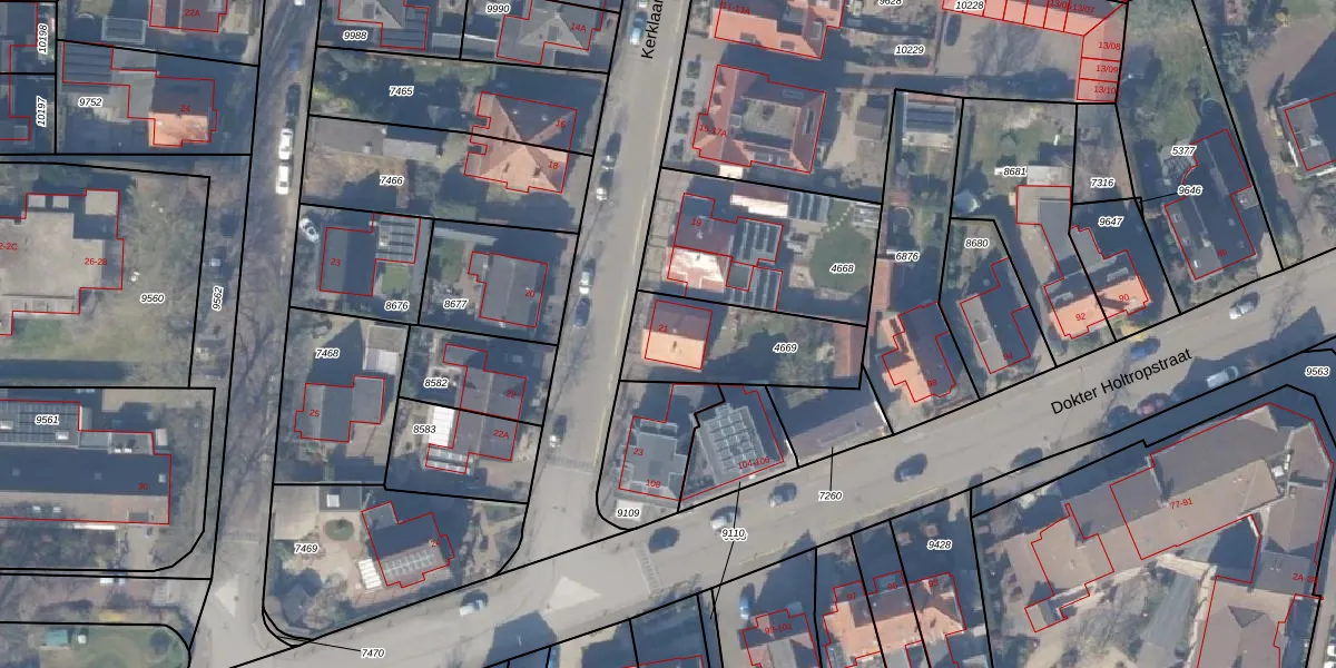 Het perceel waarop Kerklaan 21 staat heeft een oppervlakte van 408 m². Dit is een groot perceel. De perceeloppervlakte wordt geregistreerd door het Kadaster. Gedetailleerde informatie over de maten van dit perceel kunt u vinden in het rapport Kadastrale kaart met maatvoering van Kerklaan 21.