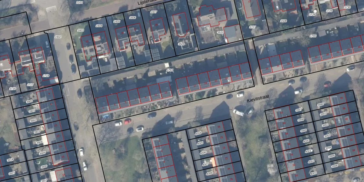 Het perceel waarop Kievitstraat 15 staat heeft een oppervlakte van 2266 m². Dit is een zeer groot perceel. De perceeloppervlakte wordt geregistreerd door het Kadaster. Gedetailleerde informatie over de maten van dit perceel kunt u vinden in het rapport Kadastrale kaart met maatvoering van Kievitstraat 15.