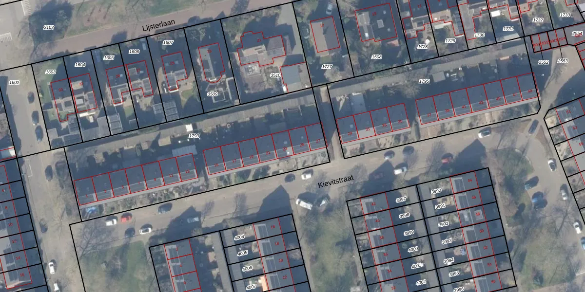 Het perceel waarop Kievitstraat 25 staat heeft een oppervlakte van 2266 m². Dit is een zeer groot perceel. De perceeloppervlakte wordt geregistreerd door het Kadaster. Gedetailleerde informatie over de maten van dit perceel kunt u vinden in het rapport Kadastrale kaart met maatvoering van Kievitstraat 25.