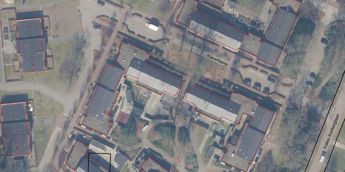 Het perceel waarop Klaverkamp 13 staat heeft een oppervlakte van 19,5 ha. Dit is een zeer groot perceel. De perceeloppervlakte wordt geregistreerd door het Kadaster. Gedetailleerde informatie over de maten van dit perceel kunt u vinden in het rapport Kadastrale kaart met maatvoering van Klaverkamp 13.