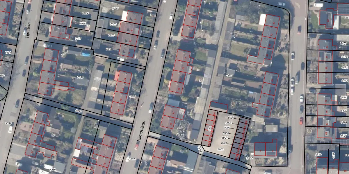 Het perceel waarop Klimoplaan 15 staat heeft een oppervlakte van 5870 m². Dit is een zeer groot perceel. De perceeloppervlakte wordt geregistreerd door het Kadaster. Gedetailleerde informatie over de maten van dit perceel kunt u vinden in het rapport Kadastrale kaart met maatvoering van Klimoplaan 15.