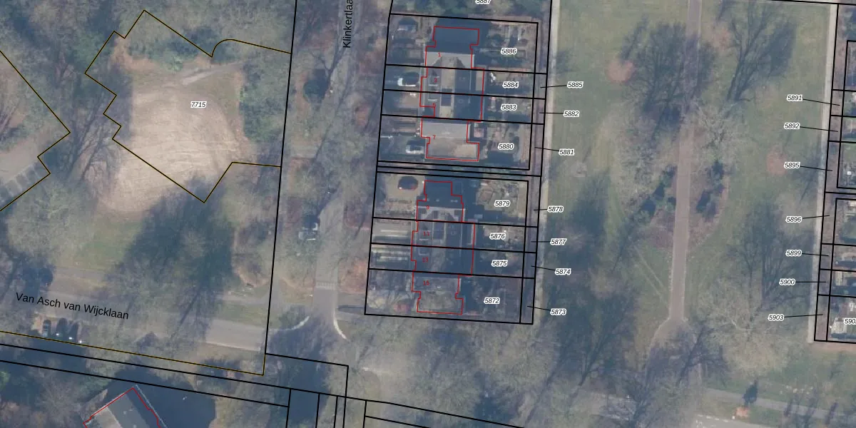 Gebruik de zoekbalk of klik op een perceel voor informatie over de adressen binnen dit perceel.