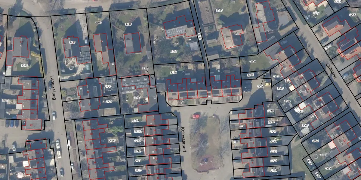 Het perceel waarop Kolevaarserf 28 staat heeft een oppervlakte van 1055 m². Dit is een zeer groot perceel. De perceeloppervlakte wordt geregistreerd door het Kadaster. Gedetailleerde informatie over de maten van dit perceel kunt u vinden in het rapport Kadastrale kaart met maatvoering van Kolevaarserf 28.