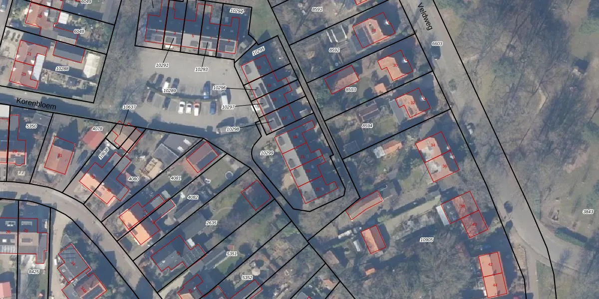 Het perceel waarop Korenbloem 21 staat heeft een oppervlakte van 640 m². Dit is een groot perceel. De perceeloppervlakte wordt geregistreerd door het Kadaster. Gedetailleerde informatie over de maten van dit perceel kunt u vinden in het rapport Kadastrale kaart met maatvoering van Korenbloem 21.