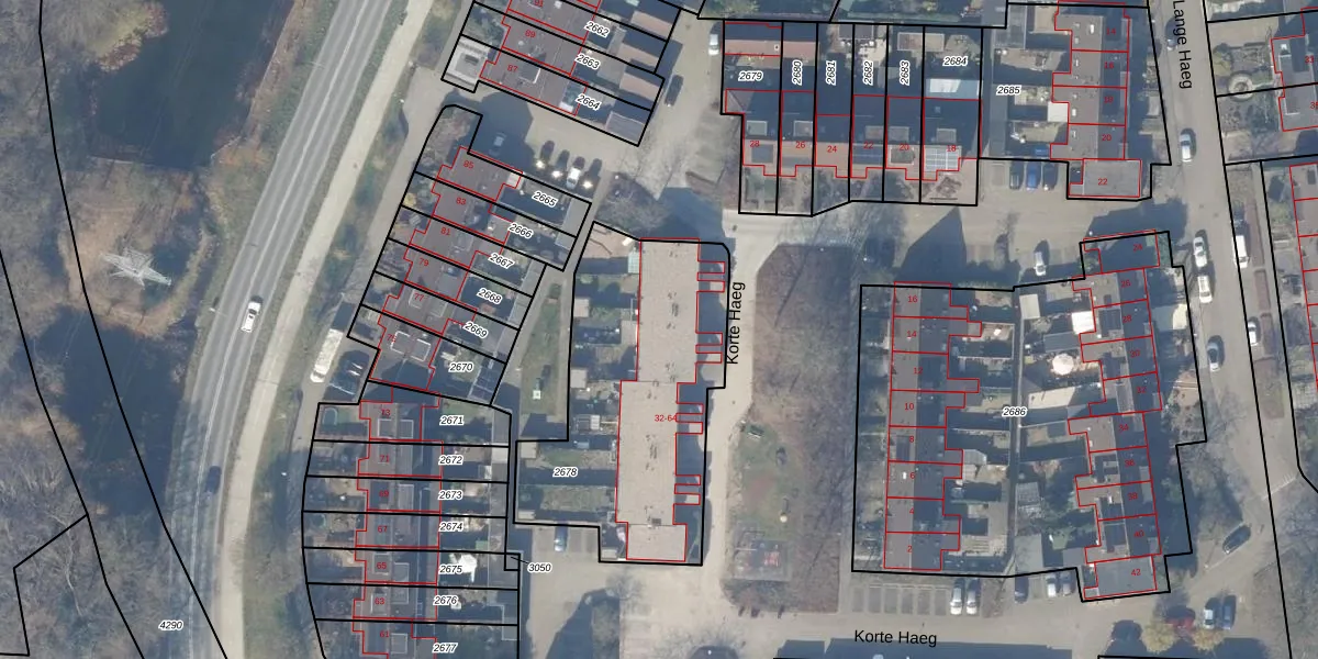 Het perceel waarop Korte Haeg 40 staat heeft een oppervlakte van 1150 m². Dit is een zeer groot perceel. De perceeloppervlakte wordt geregistreerd door het Kadaster. Gedetailleerde informatie over de maten van dit perceel kunt u vinden in het rapport Kadastrale kaart met maatvoering van Korte Haeg 40.
