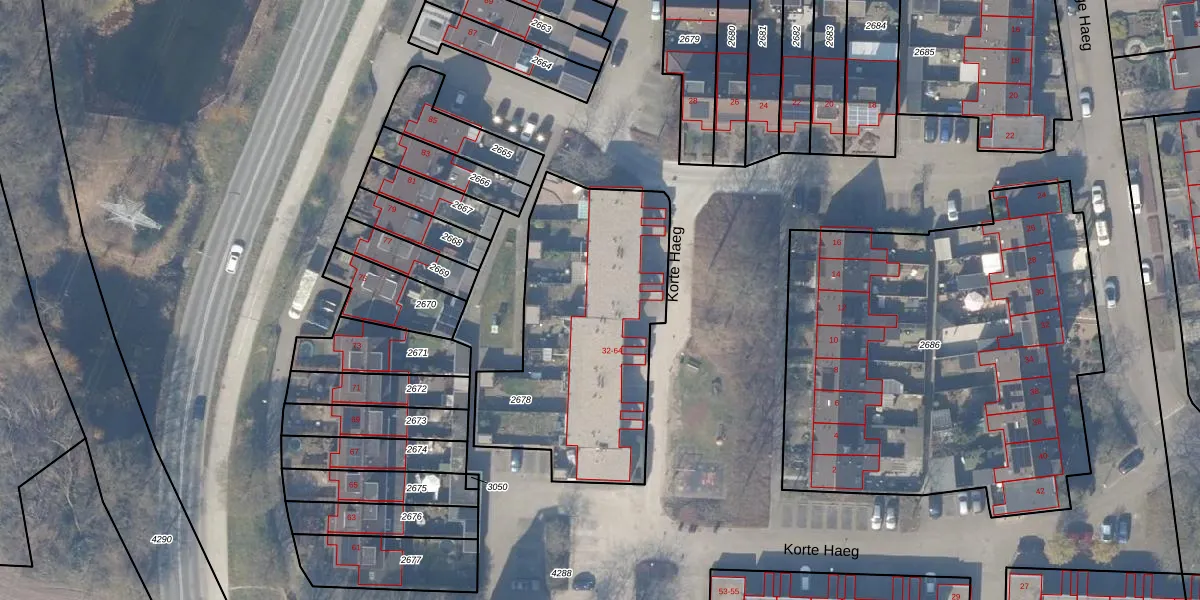 Korte Haeg 44 is gelegen op kadastraal perceel EML00G2678. Deze kadastrale aanduiding is uniek en wordt gebruikt door het Kadaster om eigendomsrechten en andere zakelijke rechten vast te leggen. Het perceel maakt onderdeel uit van de kadastrale gemeente Ermelo.