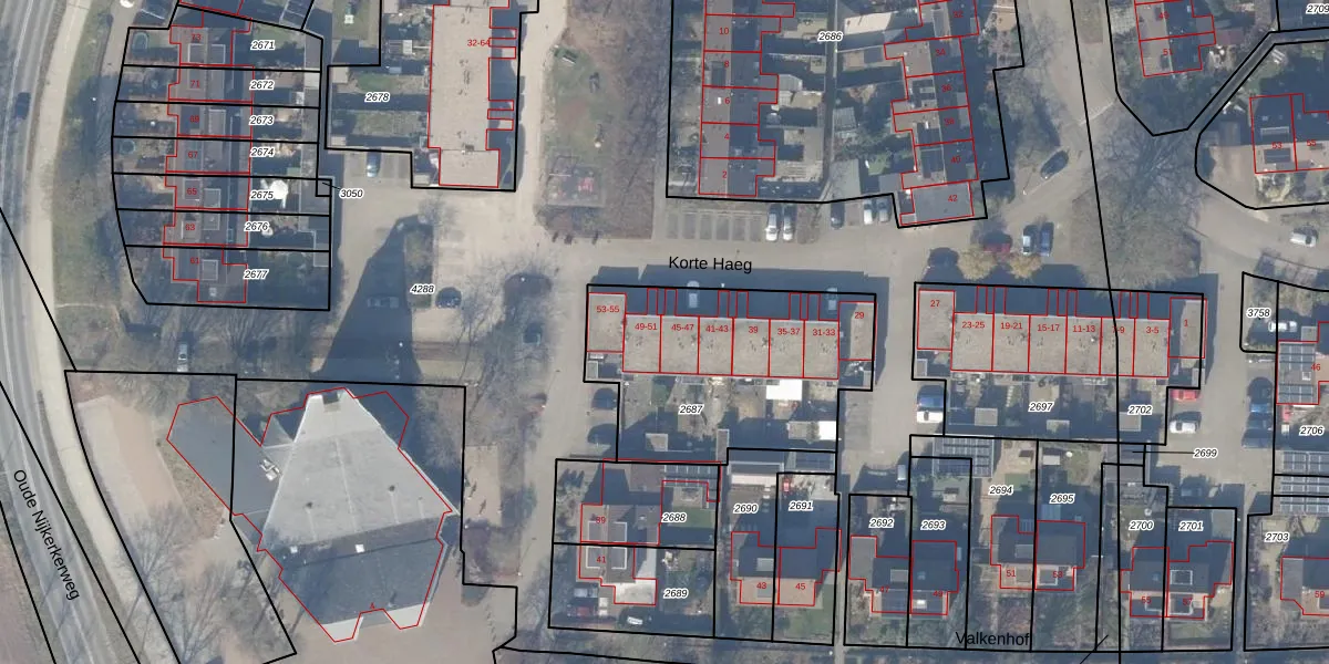 Het perceel waarop Korte Haeg 47 staat heeft een oppervlakte van 979 m². Dit is een groot perceel. De perceeloppervlakte wordt geregistreerd door het Kadaster. Gedetailleerde informatie over de maten van dit perceel kunt u vinden in het rapport Kadastrale kaart met maatvoering van Korte Haeg 47.