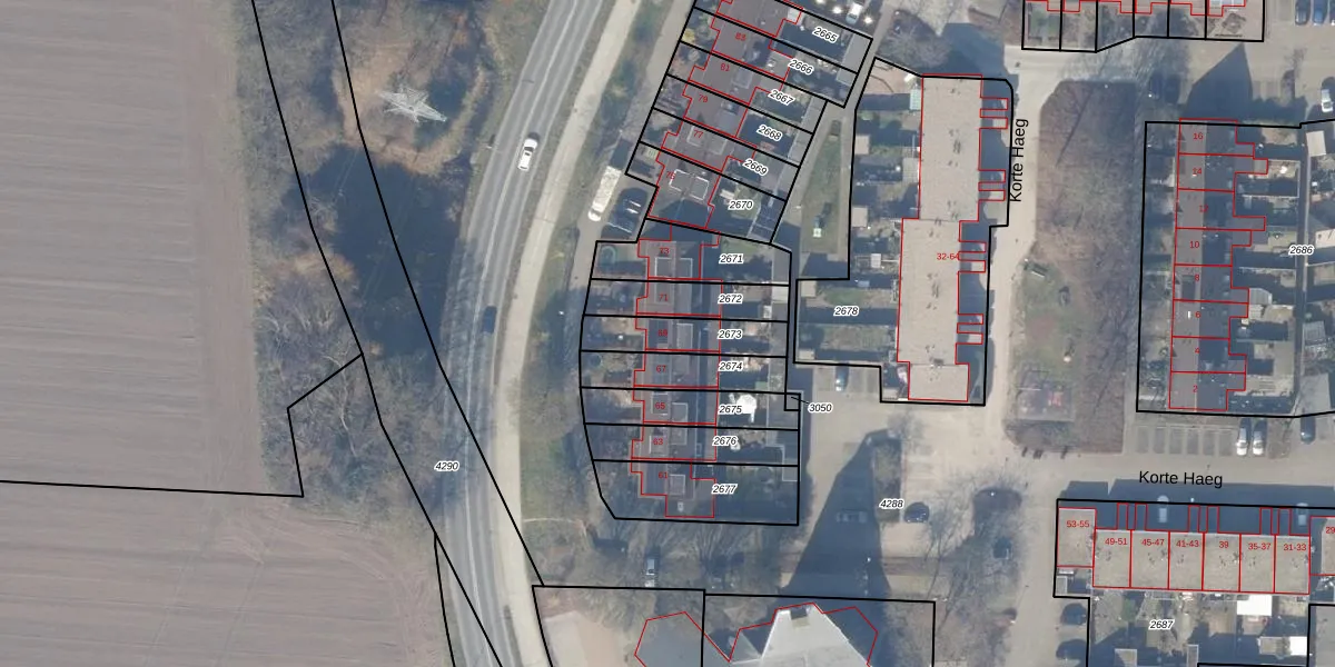 Gebruik de zoekbalk of klik op een perceel voor informatie over de adressen binnen dit perceel.