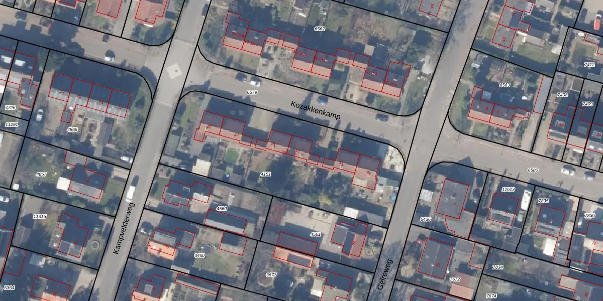 Kozakkenkamp 13 is gelegen op kadastraal perceel EML00F4151. Deze kadastrale aanduiding is uniek en wordt gebruikt door het Kadaster om eigendomsrechten en andere zakelijke rechten vast te leggen. Het perceel maakt onderdeel uit van de kadastrale gemeente Ermelo.