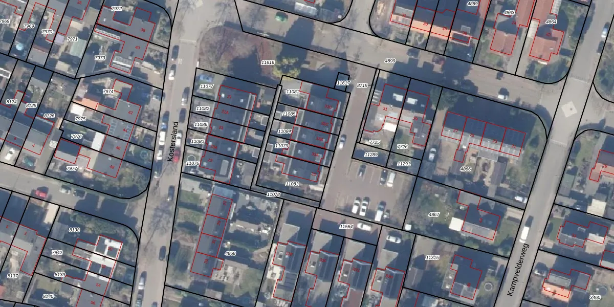 Gebruik de zoekbalk of klik op een perceel voor informatie over de adressen binnen dit perceel.