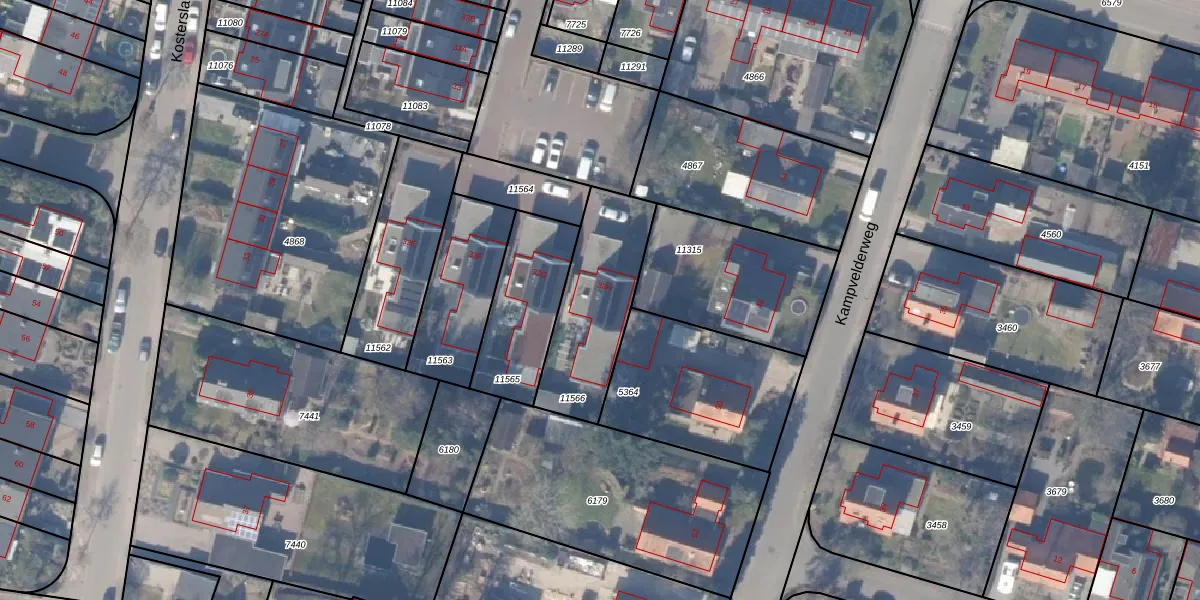 Gebruik de zoekbalk of klik op een perceel voor informatie over de adressen binnen dit perceel.