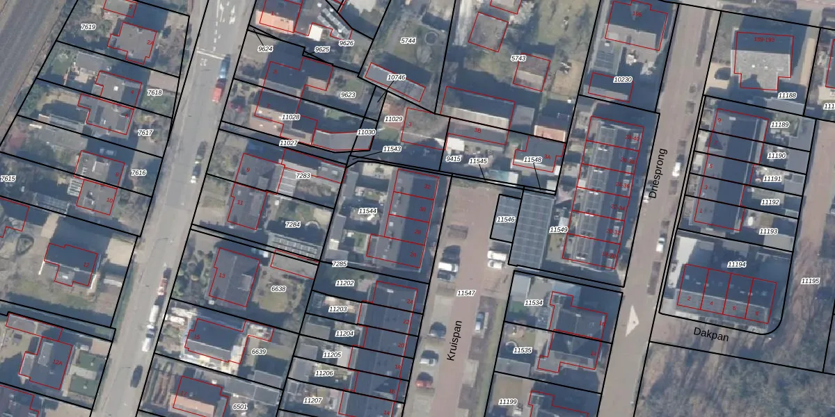 Het perceel waarop Kruispan 30 staat heeft een oppervlakte van 674 m². Dit is een groot perceel. De perceeloppervlakte wordt geregistreerd door het Kadaster. Gedetailleerde informatie over de maten van dit perceel kunt u vinden in het rapport Kadastrale kaart met maatvoering van Kruispan 30.